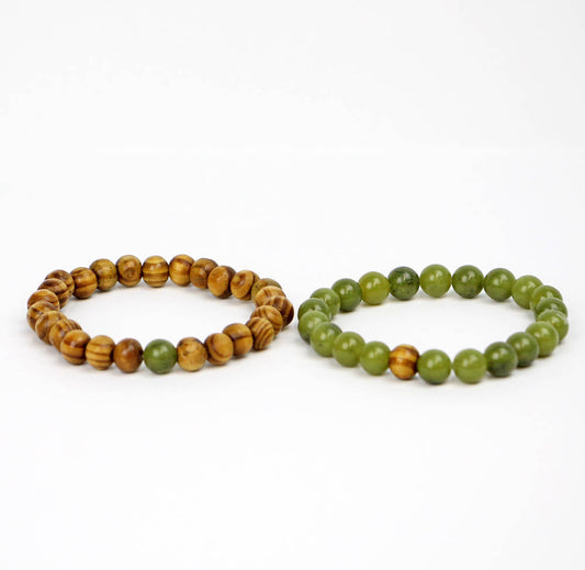 Couples Bracelet Set of 2 Burlywood and Jade Stretch Bracelets