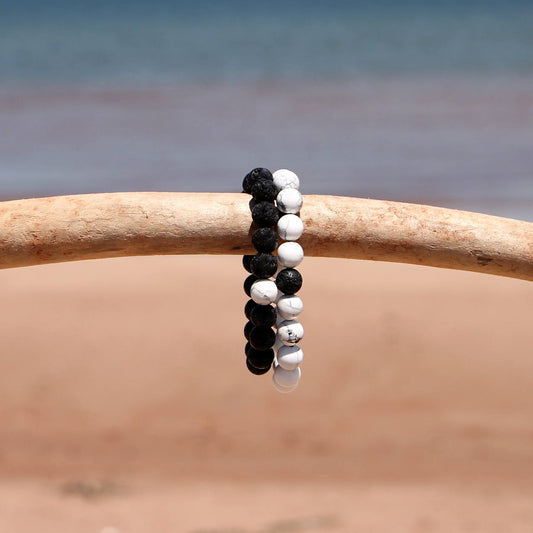 Couples Bracelet Set of 2 Lava and Natural Turquoise Stretch Bracelets