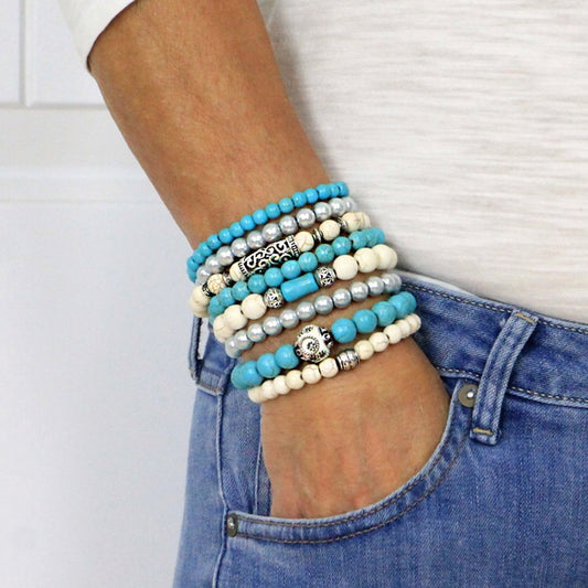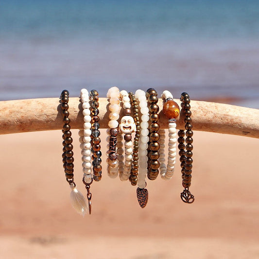 Men's Bracelets Set of 3 Beaded Stretch Bracelets Buddha Yoga Stack - M5