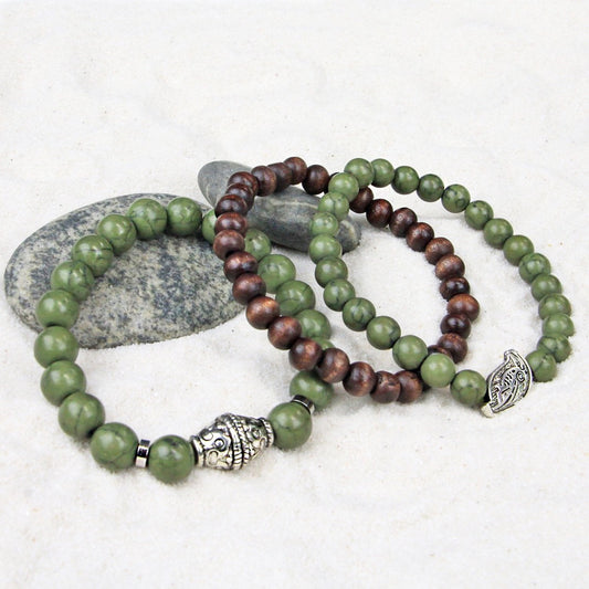 Men's Bracelets Set of 3 Beaded Stretch Bracelets Stack in Natural Tones of Olive, Bronze and Brown - M15