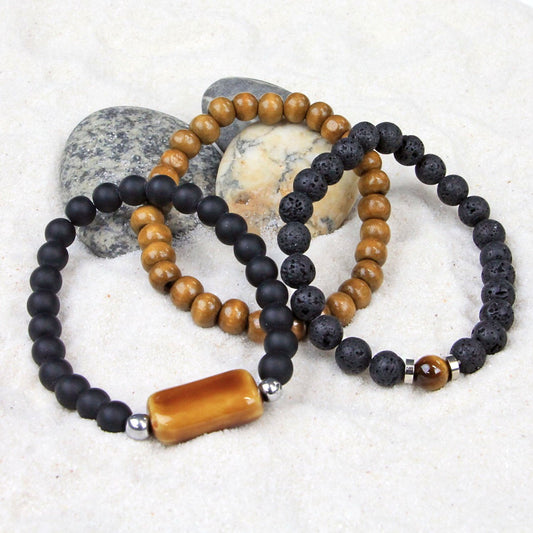 Men's Bracelets Set of 3 Beaded Stretch Bracelets Stack - M1