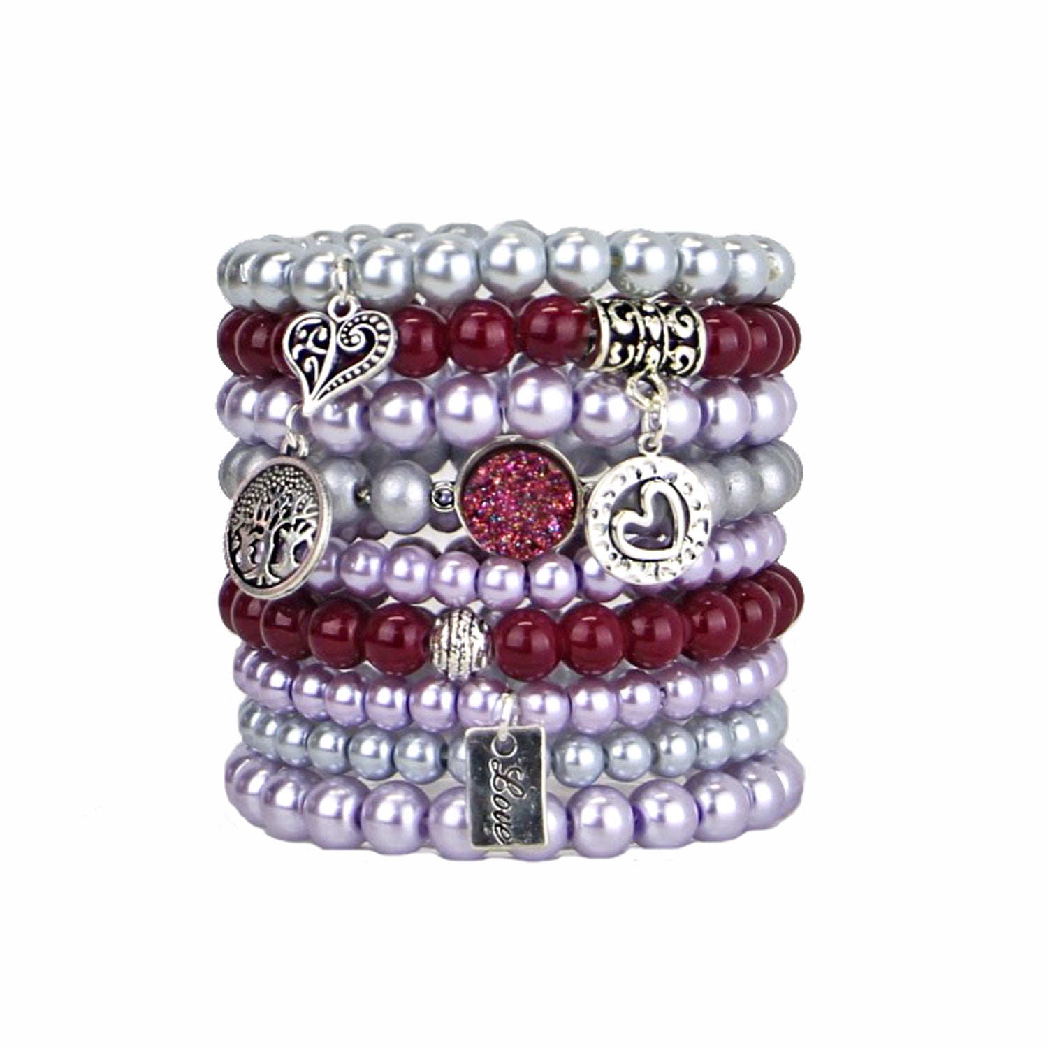 Available in a large stack of 9, or smaller stack of 5 bracelets.