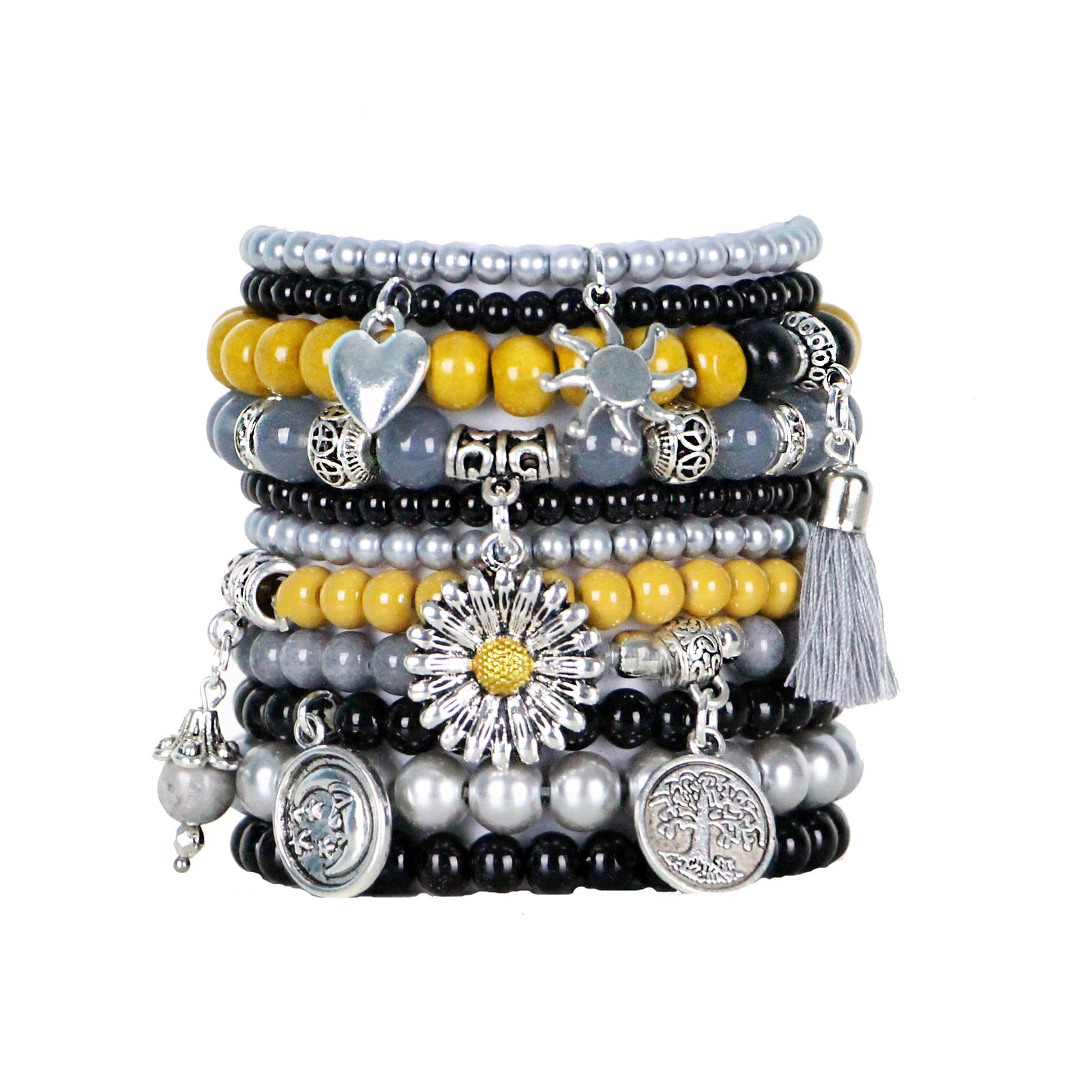 Can be worn all together for a dramatic bohemian effect or a few at a time to match an outfit or mood. Great with jeans or a little black dress!