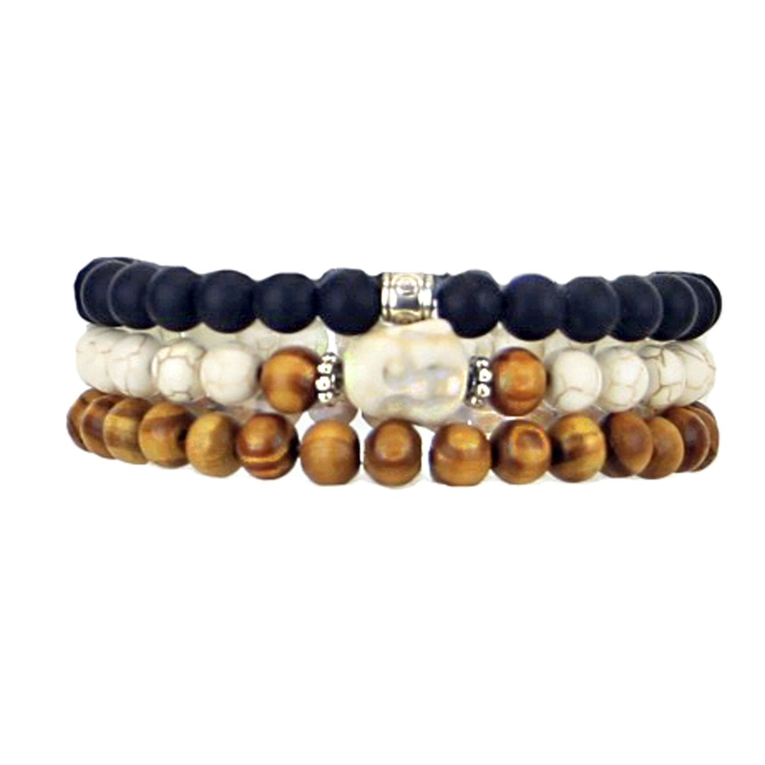 Men's Bracelets Set of 3 Beaded Stretch Bracelets Buddha Yoga Stack - M5