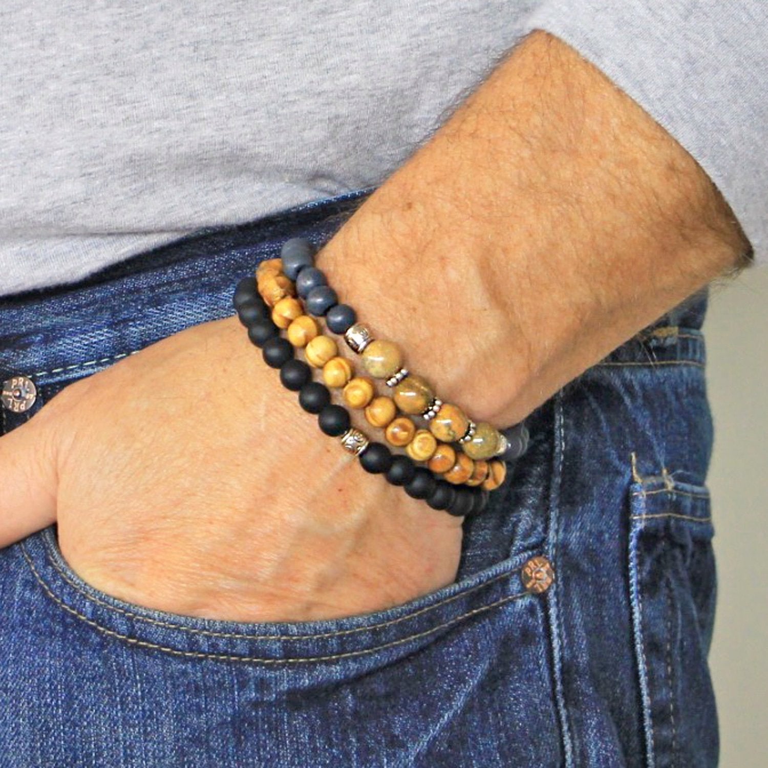 Men's Bracelets Set of 3 Beaded Stretch Bracelets Stack - M11