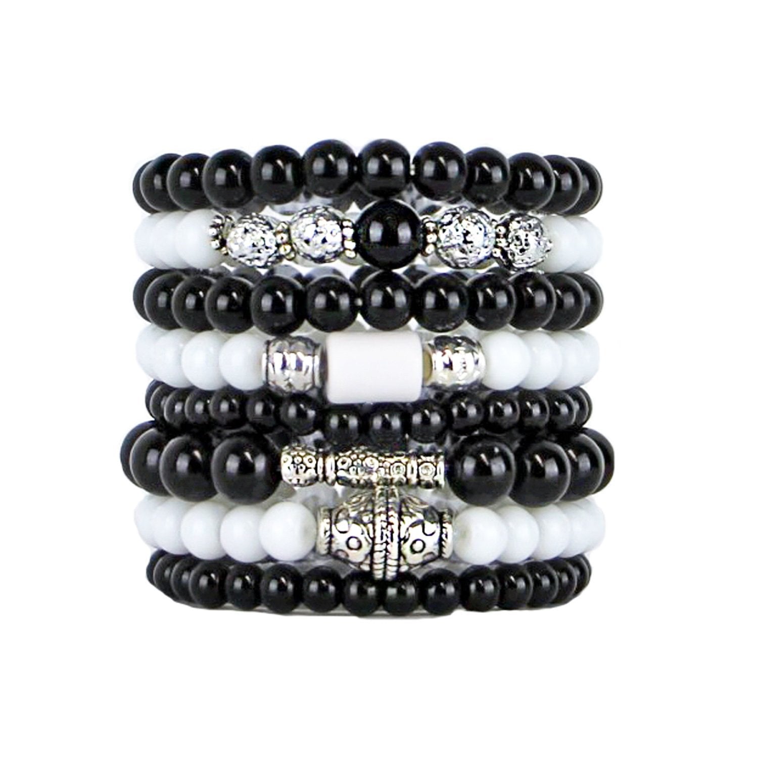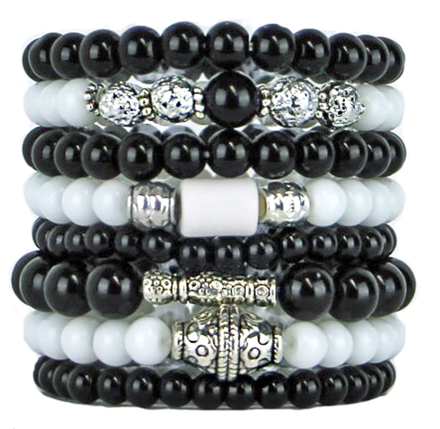 Take a look at this stunning set of stretch bracelets ... in classic black and white.