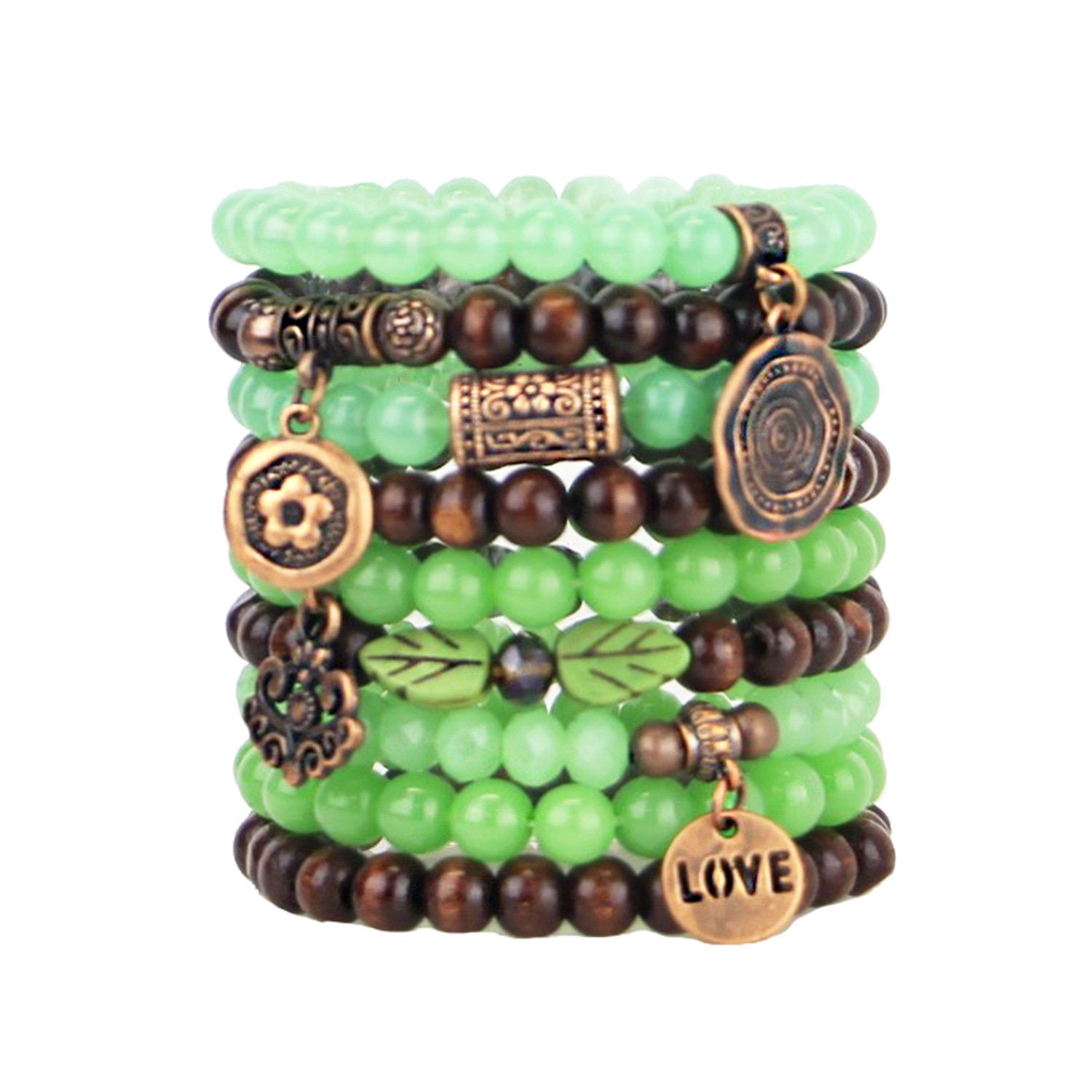 Take a look at this calming set of stretch bracelets ... in earth tones of browns and greens!